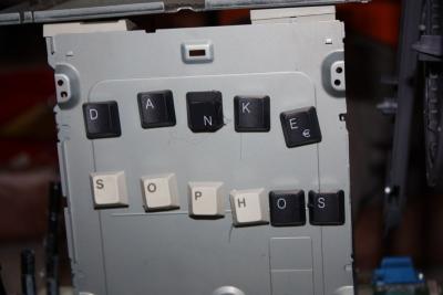 In meiner Skulptur spielt die Firma Sophos eine große Rolle, da sie mir das meiste Material zur verfügung gestellt hat (siehe Bilder von oben).